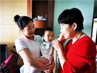 车刚开到门口,开心的宝爸、宝妈带着宝贝儿出来迎接江婆婆。开心的莫过于宝宝奶奶,离江医生还有几米远就伸出了热情的手。